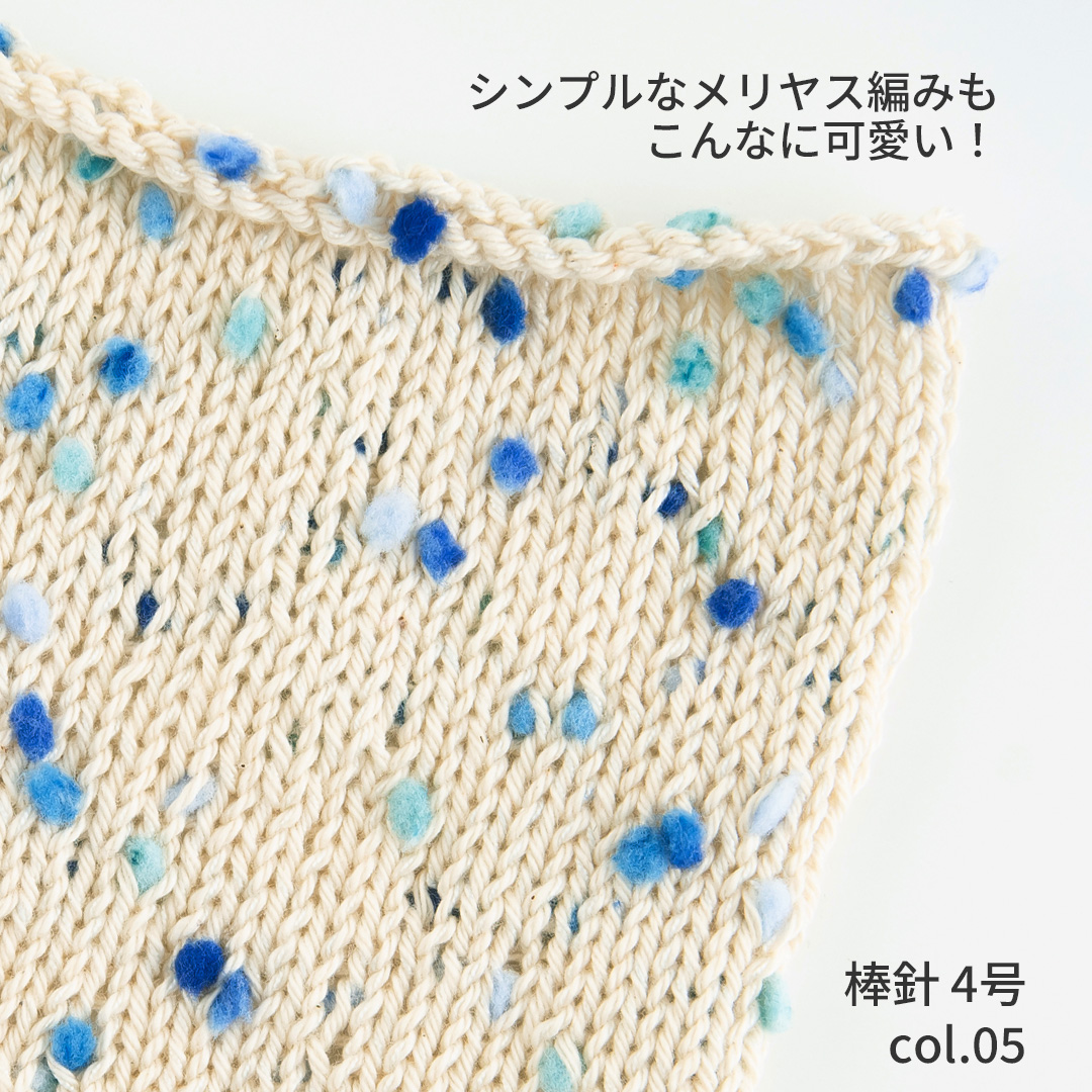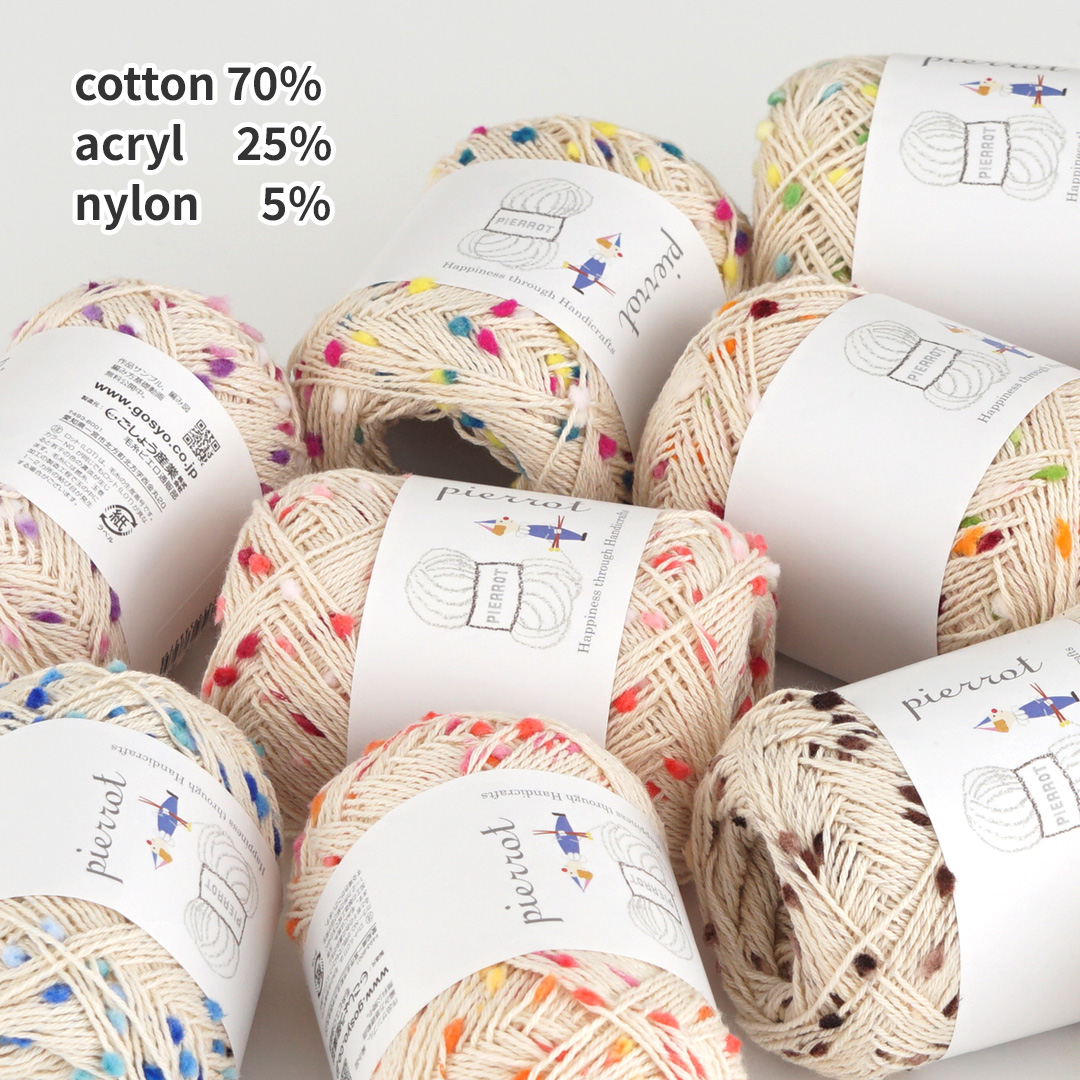 毛糸には、製造工程の都合上、毛糸1玉の中に、1〜2ヶ所の結び目が発生する場合がございます。