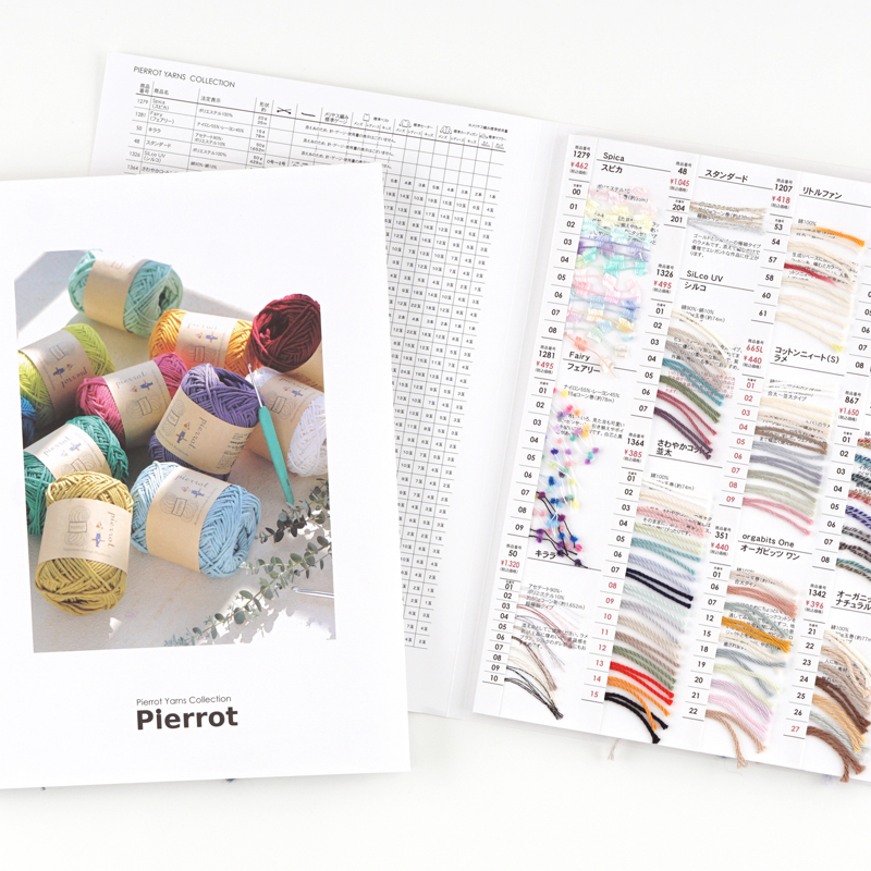 毛糸ピエロおすすめ毛糸の実物の糸端が付いた「糸付きカタログ」です。風合いや肌触り、色合いをご体感いただけます。2025年新色や発売前の商品も掲載した内容となっております。 ■掲載商品について ・「フェアリー」の06番・09番は廃番終了いたしました。 ・「コットンニィート(S)ラメ」は、2026年に発売予定です。 ・「粉雪ループ(ソリッド)」の新色は、2025年9月に販売いたします。 ■掲載商品一覧(2025年度制作) スピカ / フェアリー / キララ / スタンダード / シルコUV / さわやかコットン並太 / リトルファン / コットンニィート(S)ラメ(2026年販売予定) / オーガビッツ ワン / コットンマム / カメレオン カメラ 2 サマー / オーガニックコットン ナチュラル / ベーシックコットン / ベーシックコットン カラーズ / グレイスフル リネン / わたぼうしラメ・コットン / コットンニィート / コットンニィート(S) / かこっとん / ポシェットNEW / グランディール / ソフトメリノ / ホイップスNEW(太) / タムタム / ラビッツ / 粉雪ループ(段染め) / 粉雪ループ(ソリッド) / ぽんぽんワルツ / ロッキーメリノ並太 / ヌボラ2 / ファインメリノ並太 / ソフトメリノ段染め / モニ / ブルームグラデーション / ソリッソ / アルパカメリノ / メリノライフ / ソフトメリノ中細