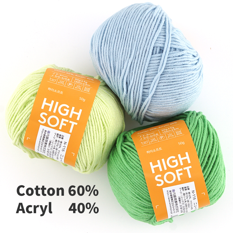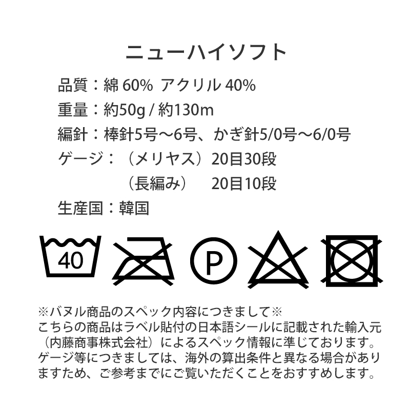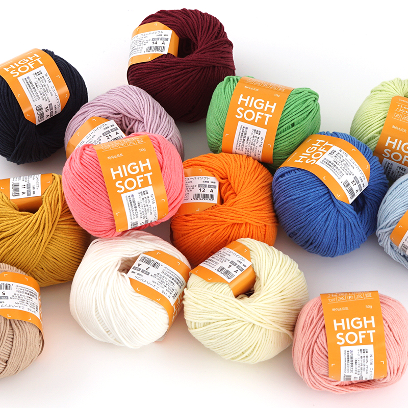 韓国の国内生産・国内染色による信頼性の高い品質でしっかりとした厚みのある仕上がり。太めの針を使ってざっくりとした編み地にしてよく映えるため、幅広い作品にお使いいただけます。(輸入元公式HPより)