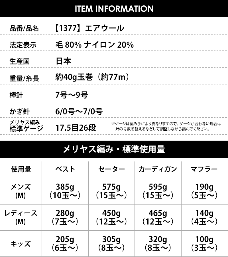 毛糸には、製造工程の都合上、毛糸1玉の中に、1〜2ヶ所の結び目が発生する場合がございます。